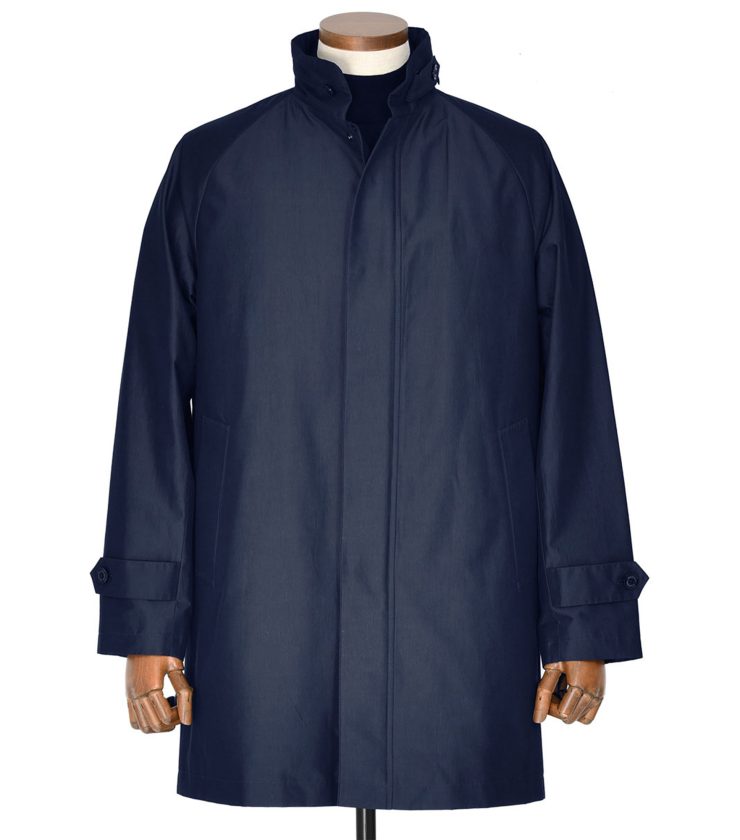 端正な佇まいが際立つ、スタンドカラー仕様のコート。